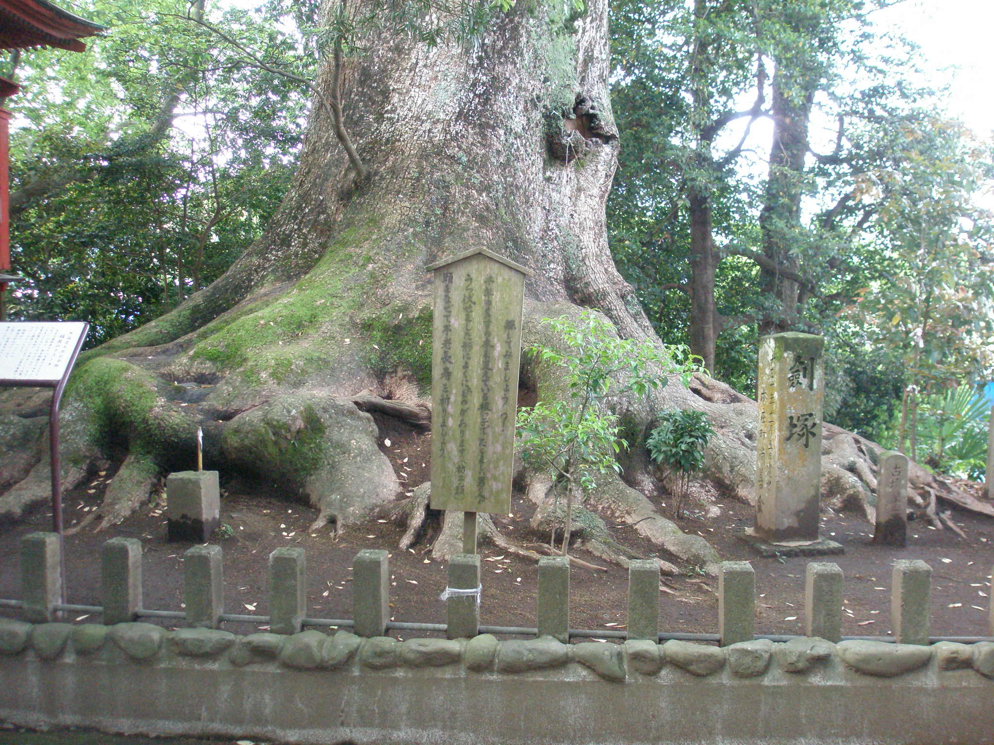 44 本庄古墳群の中の剣塚。神武天皇の兄・稲氷命の塚、景行天皇の妃・御刀媛の陵、日本武尊が熊襲征伐で熊襲武を討った短刀が埋められたなどの伝説がある。