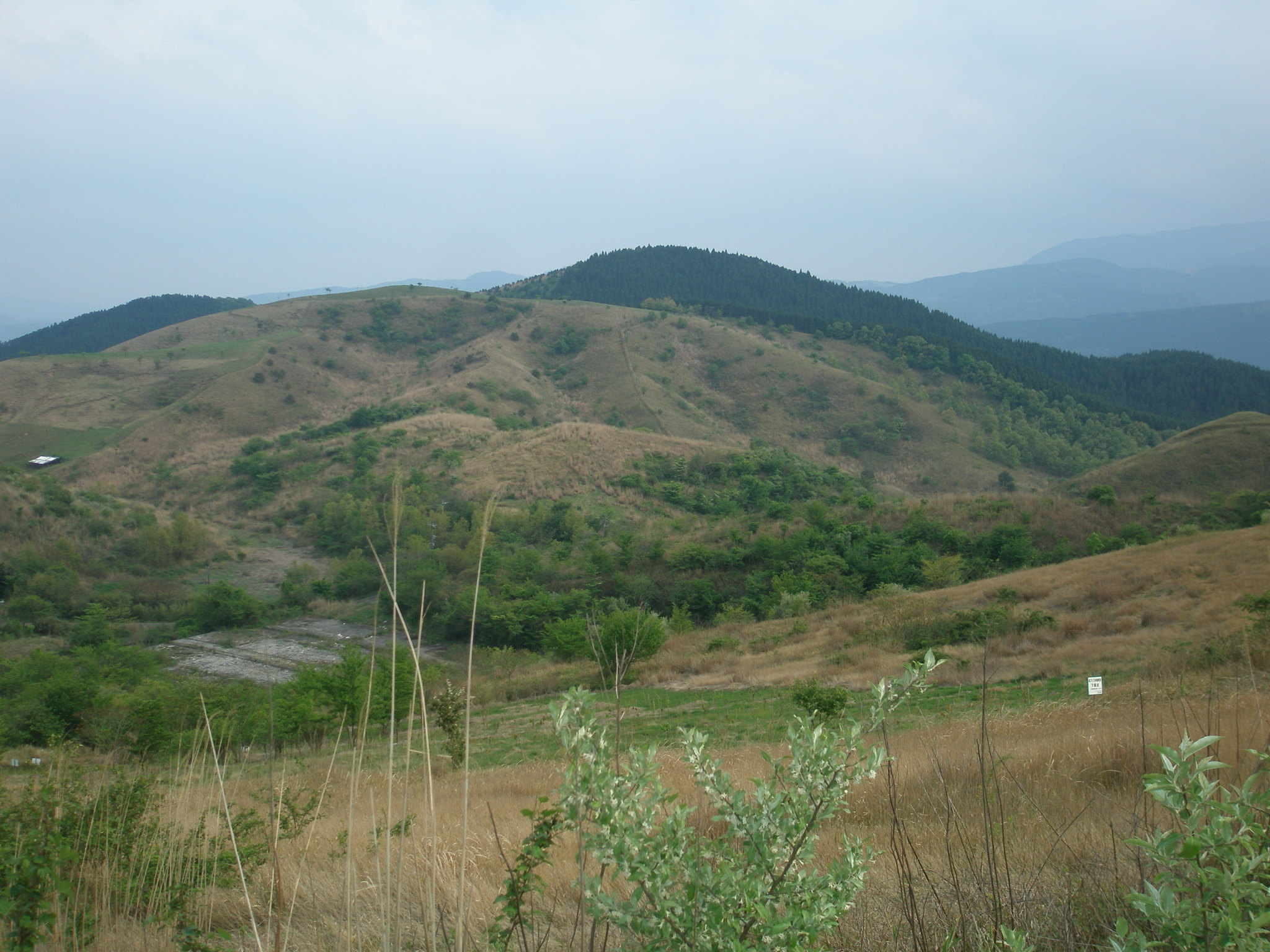 60 湯布院の高尾山。中央右前方の針葉樹林の山。この山でなければならなかった理由があるはずです。
