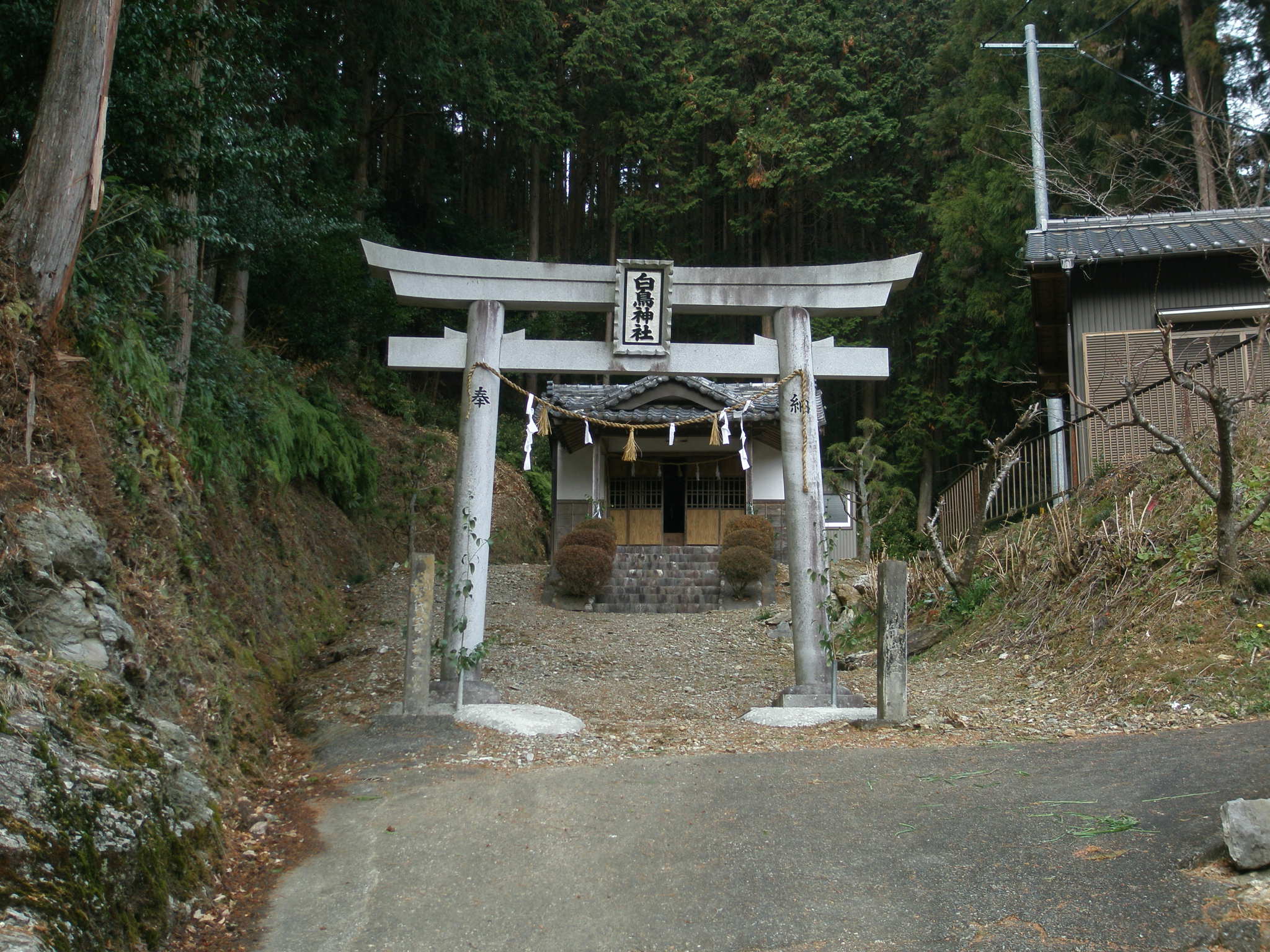 8 長篠から金指に向かう街道、引佐町にある白鳥神社 陸上隊は新城を経て長篠から金指に進んだと思われる。