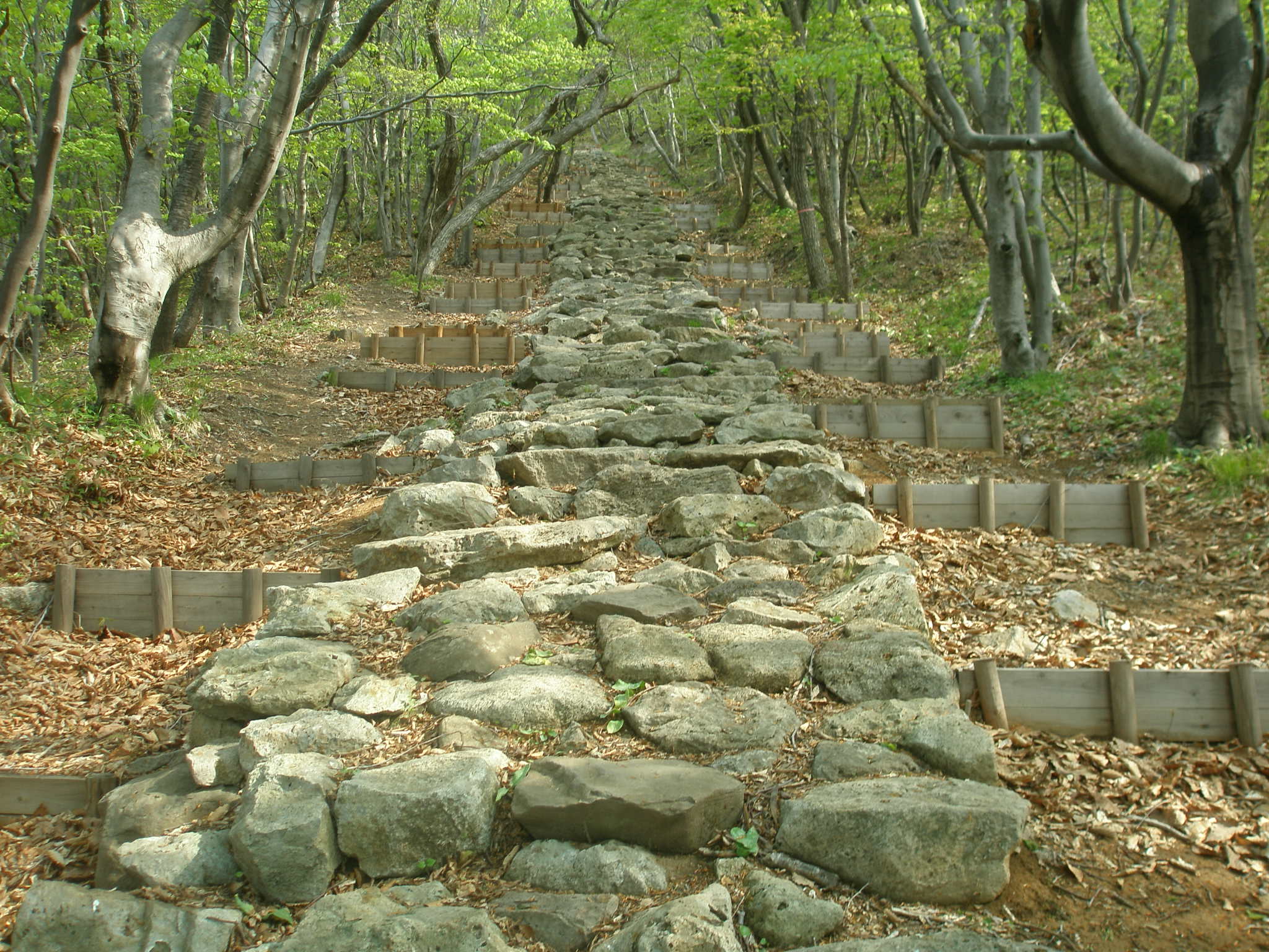 7 なまはげが一晩で造ったと伝わる石段。赤神神社五社堂に通じる。