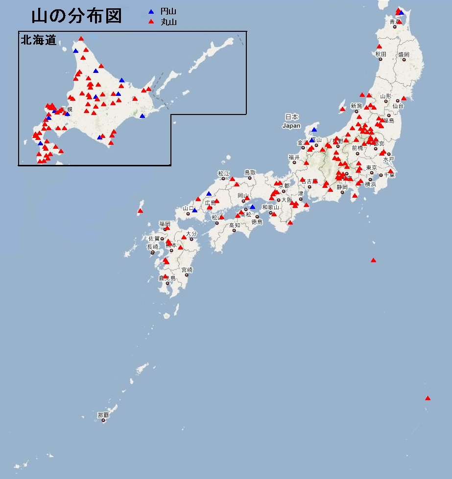 山の形状からの命名だけに、全国にある。それでも岩手に無くて、北海道に多いのは何故だ?北海道の山は丸いのが多いのか、開拓時命名の手抜きか?