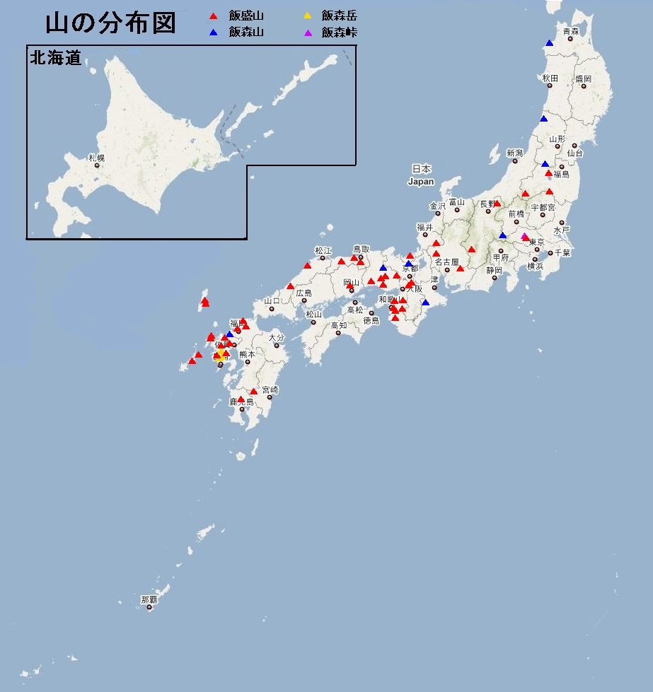 北九州と近畿地方に集中している。小さな対馬に全国の山と同じ山がよくある。